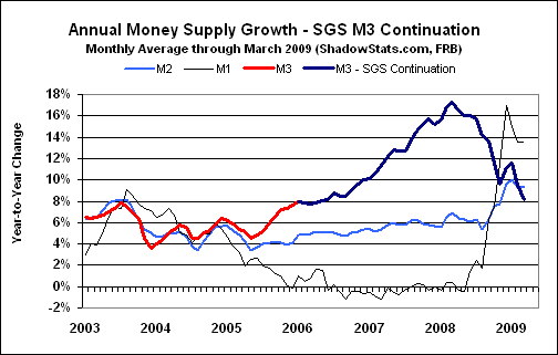 Do Not Mistake Declining Living Standards for Deflation. The popularly-followed CPI-U inflation measure just turned in its first formal deflation reading (year-to-year contraction) in 54 years. With March 2009 reflecting annual deflation of 0.4%, the SGS-Alternate Consumer Inflation measures still reflect annual inflation ranging from somewhat below 3% to roughly 7%, with the 7% being my best estimate of where current CPI reporting would be, if it were calculated using the methodologies in place as of 1955, the time of the last formal deflation reading.
