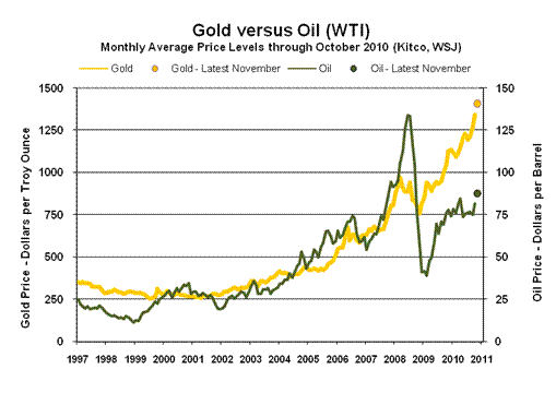 Producer Price Index — PPI (October 2010). The October PPI is due for release on Tuesday, November 16th, with higher oil prices expected to push monthly wholesale inflation higher than September’s 0.4% gain. The series is somewhat randomly volatile, but higher inflation is likely here, on both a monthly and annual basis, reflecting early "success" in the Fed’s efforts to debase the U.S. dollar.