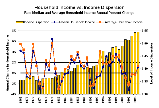 Income variance is a long-term driver and indicator of economic activity. Another record high — well in excess of the level seen before the 1929 stock crash and Great Depression — was reported as part of the Census Bureau’s just-released Income, Poverty, and Health Insurance Coverage in the United States: 2005