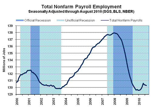 On September 20th, the National Bureau of Economic Research (NBER) — official arbiter of the timing of the U.S. business cycle — declared the December 2007 recession to have ended in June 2009. Officially, the economy has been in recovery ever since. The official call of the recession’s end does not in any way alter the economic outlook, either as to existing underlying business activity or as to the course of likely future economic activity; only the nomenclature that will be used in describing current activity has been changed. The re-intensifying economic downturn — already underway — simply will be called the second-dip of a double-dip recession, at such time as the NBER gets around to recognizing the "new" contraction in economic activity.