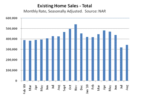 Thursday’s (September 23rd) release of August existing home sales (counted based on actual closings, National Association of Realtors [NAR]) showed a little rebound in activity from July, but basically still at historically-low levels.