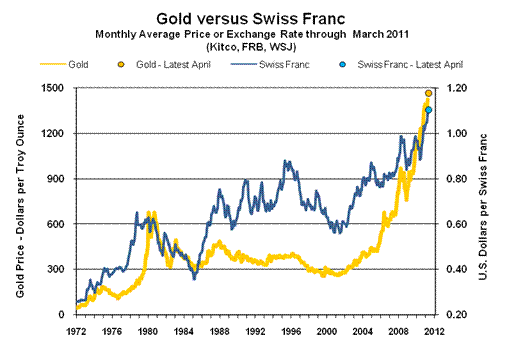 Hyperinflation Watch. In line with expectations detailed in the Hyperinflation Special Report (2011), near-term circumstances generally have continued to deteriorate. As measured by the consumer price index and as reflected in the dollar’s recent record-low values against the stronger major Western currencies and gold, the U.S. dollar is losing its purchasing power at an accelerating pace. On the political front, vitriolic tactics used during the recent fight over minimal budget cuts offer no hope of the current political powers being able to save the federal government from its long-term insolvency. Yet, there seems to be enough aggressive new blood in the system that the issues may get at least a good public airing. What has happened and is happening remains consistent with the general outlook detailed in the hyperinflation special report.