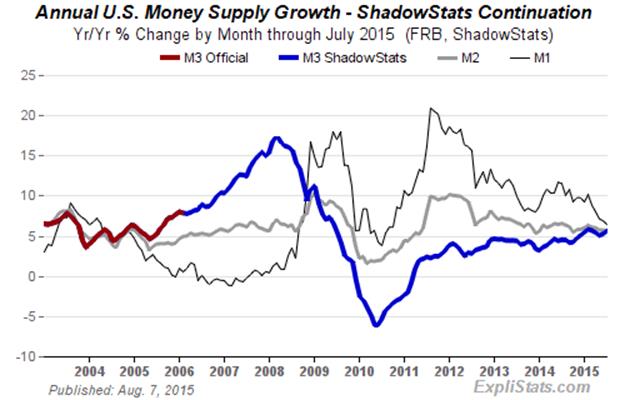 Initial estimates for annual growth in M3, M2 and M1 for July 2015 have been updated on the Alternate Data tab of www.ShadowStats.com.
