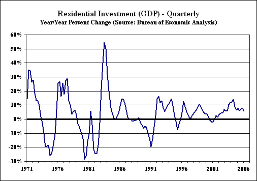 Next Release (June 29): The "final" estimate for first-quarter 2006 GDP likely will be no more than statistical noise. The reported growth rate, however, will be revised again on July 28th in the annual revisions to the GDP series. These numbers likely will continue to be dominated by the political needs of the Administration.