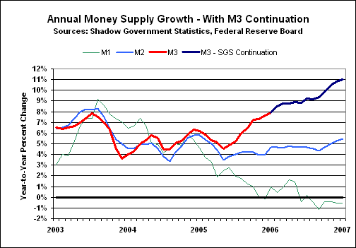[Note: Historical annual growth data for the money supply series, including the ongoing SGS estimates of M3, are available for download on the Alternate Data page of www.shadowstats.com. See the August 2006 SGS for methodology.]
