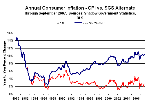 Alternate Realities. General background note: This section updates the Shadow Government Statistics (SGS) alternate measures of official CPI and GDP reporting. When a government economic measure does not match common public experience, it has little use outside of academia or the spin-doctoring rooms of the Federal Reserve, White House and Wall Street. In these alternate measures, the effects of gimmicked methodological changes have been removed from the official series so as to reflect more accurately the common public experience, as embodied by the post-World War II CPI and the pre-Reagan-Era GDP. The methodologies for the series are discussed in the August 2006 SGS (see Archives page at www.shadowstats.com).