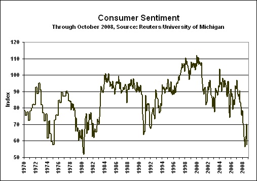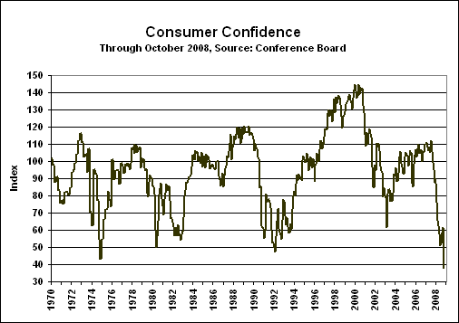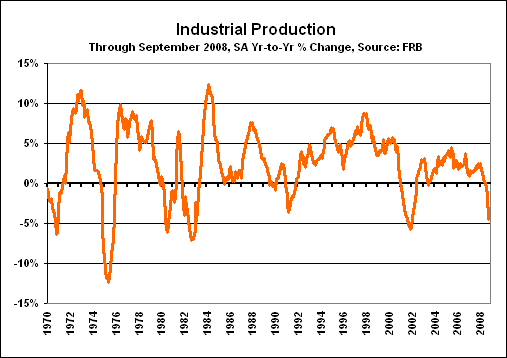 The consumer confidence and sentiment measures have shown extremely sharp downturns, and are consistent with the annual growth patterns seen in housing starts and retail sales, as well as the later pattern seen in payrolls. In like manner industrial production has mirrored the pattern of consumer demand.