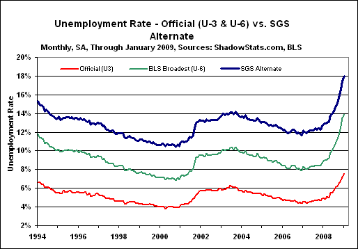 General background note: Historical data on both the official and SGS-Alternate unemployment series are available for download on the Alternate Data page of www.shadowstats.com. The Alternate numbers are reported from the 1994 series redefinitions forward. It is planned to take the alternate series further back in time.