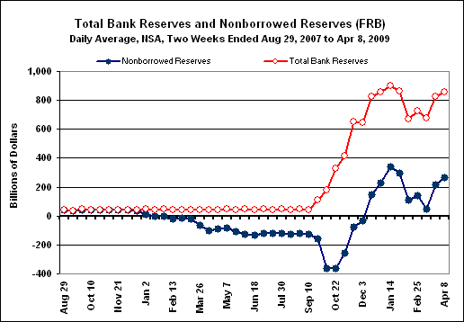 The latest assurances that the Fed’s massive liquidity creation will not create inflation came from Federal Reserve Vice Chairman Donald L. Kohn in an April 18th speech, "Monetary Policy in the Financial Crisis:"