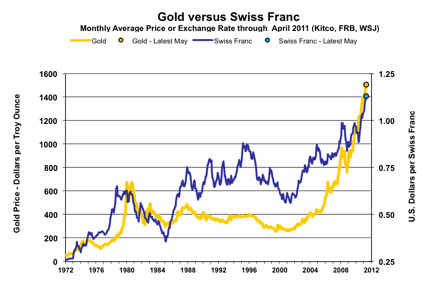 As shown on page 43 of the Hyperinflation Special Report (2011), over the decades, the price of gold has compensated for more than the loss of the purchasing power of the U.S. dollar as reflected by CPI inflation, while it has effectively fully compensated for the loss of purchasing power of the dollar based on the SGS-Alternate Consumer Price Measure (1980 Methodologies Base).