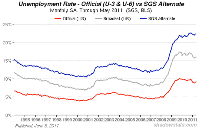 May Unemployment Rates: 9.1% (U.3), 15.8% (U.6), 22.3% (SGS)
