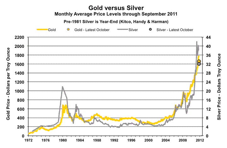 Gold and Silver Highs Adjusted for CPI-U/SGS Inflation. Despite the September 5th historic-high gold price of $1,895.00 per troy ounce (London afternoon fix), and despite the multi-decade high silver price of $48.70 per troy ounce (London fix of April 28th), gold and silver prices have yet to re-hit their 1980 historic levels, adjusted for inflation. The earlier all-time high of $850.00 (London afternoon fix, per Kitco.com) of January 21, 1980 would be $2,479 per troy ounce, based on September 2011 CPI-U-adjusted dollars, $8,677 per troy ounce based on SGS-Alternate-CPI-adjusted dollars (all series not seasonally adjusted).