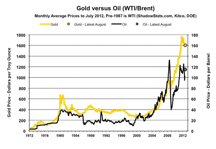Gold Graphs. The preceding are the usual graphs of Gold versus the Swiss franc, oil and silver. The dollar continues to be propped artificially against the Swiss franc, but, as discussed above, that should be short-lived. Political tensions in the Middle East and other supply concerns have been moving oil prices higher. The precious metals remain primary stores of wealth. As the ultimate long-term hedges against the dollar-debasement ahead, physical gold and silver enable investors to preserve the purchasing power and liquidity of their paper assets.