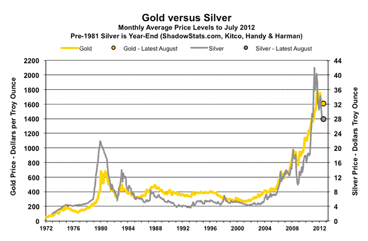 As shown in Table 1 on page 50 of Hyperinflation 2012, over the decades, the increases in gold and silver prices have compensated for more than the loss of the purchasing power of the U.S. dollar as reflected by CPI inflation, while they effectively have compensated fully for the loss of purchasing power of the dollar based on the SGS-Alternate Consumer Price Measure (1980 Methodologies Base).