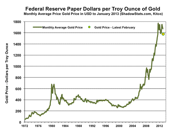 The Fed is extremely sensitive to publishing comments that could impact the markets, so any such comments that have major market impact almost have to be viewed as deliberate. The wordings of regular statements that follow FOMC meetings, of FOMC meeting notes and of the “beige book” on economic conditions are crafted carefully, with desired market reaction, or lack of reaction, in mind. All the negatives surrounding QE3 were well understood by the Fed in advance of the QE3 introduction September 2012, and in its later expansion in December. Accordingly, the wording of the minutes released on Wednesday (February 20th) most likely was a deliberate and calculated action aimed at moving the currency and precious-metals markets. It also could have been aimed at placating China, where recent public criticism had been offered on the “excessive” money creation in the United States.