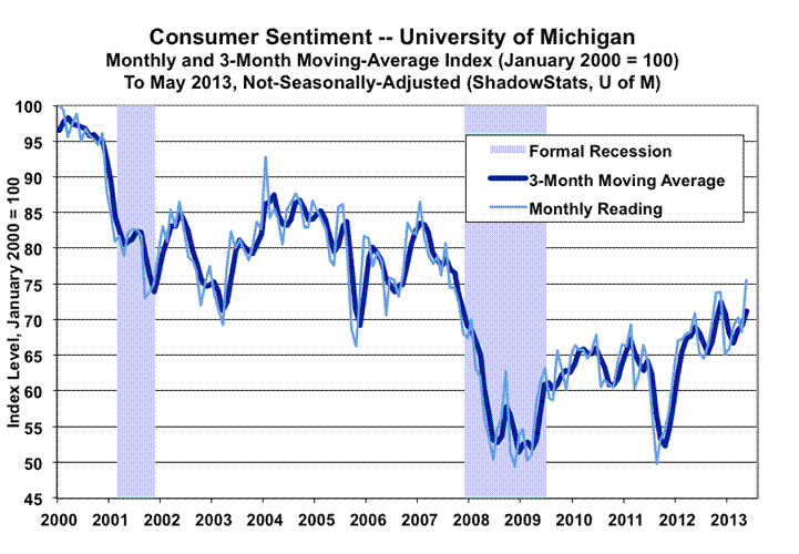 Note: The stability of the seasonal-adjustment process (particularly the concurrent seasonal-adjustment process used with retail sales) and of sampling methods has been disrupted severely by the unprecedented depth and length of the current economic downturn in the post-World War II era (the period of modern economic reporting. Under such circumstances, where the markets effectively are flying blind as to actual economic activity, consideration of broad underlying fundamentals is essential. Consumer income and credit remain structurally impaired, as discussed in the Opening Comments, Hyperinflation 2012 and Special Commentary (No. 485).