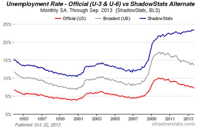 September Unemployment: 7.2% (U.3), 13.6% (U.6), 23.3% (ShadowStats)