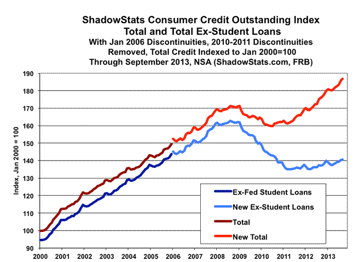 Money Supply. Due to unusually-high volatility in the weekly data used in putting together the ShadowStats-Ongoing M3 Measure, the publication of an initial estimate of annual M3 growth for October 2013, which usually would be published here, instead, will published be over the weekend (November 9th) on the Alternate Data tab of www.ShadowStats.com. A brief Commentary on the latest money supply numbers will follow early in the week ahead. Against what currently is year-to-year growth of 4.1% in September M3, the October number likely will be higher by a couple of tenths of one-percent.