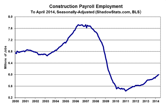 Based on the headline payroll employment reporting in April, the BLS trend model indicates a 235,000 headline jobs gain for May 2014, as indicated by ShadowStats affiliate www.ExpliStats.com. The consensus outlook tends to settle in near the trend number, and that appears to be the case for the current circumstance. Further to the discussion in the Opening Comments, more-detailed information is available here: Payroll Preview.