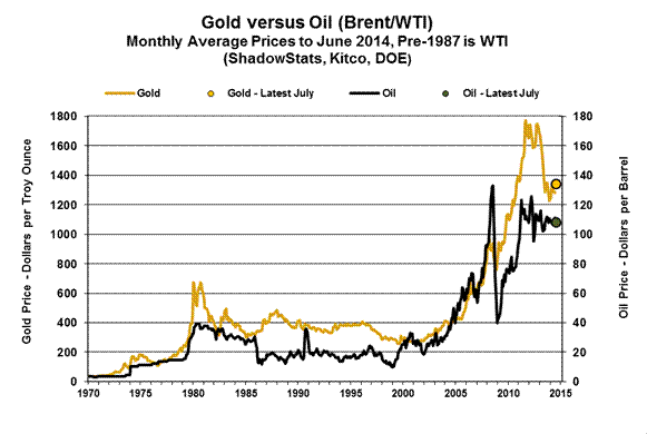 Some Comparative Market Numbers—Equities versus Gold and Silver. With the extremely volatile financial markets of recent years, it is easy to cherry-pick dates to show desired comparative relative gains and losses in indicators of various financial assets. The price or index changes discussed here simply are measured from December 31, 1999 to date, a period consistently used by ShadowStats for long-term comparative purposes, reflecting activity in the new century; and from December 31, 2013 to date (July 10, 2014), reflecting changes since the beginning of the year.