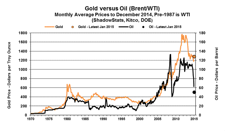 The stronger U.S. currency has been a fundamental and primary depressant for oil prices, which have continued to decline. Also at play with falling oil prices are apparent ongoing efforts by the United States in creating financial stress and pressure on Russia. The stronger dollar also has been a primary depressant of, or otherwise has reflected shifts of underlying sentiment for, gold and silver prices, although the precious metals’ prices currently are off their near-term bottom levels seen in November 2014, and have rallied some since the non-intervention to depress the Swiss franc.