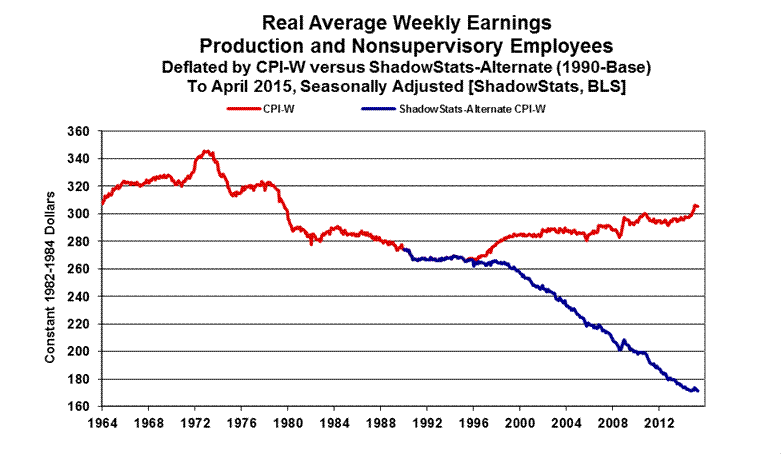 The April 2015 ShadowStats-Alternate Consumer Inflation Measure (1980-Base), which reverses gimmicked changes to official CPI reporting methodologies back to 1980, was at about 7.4% (7.38% for those using a second decimal point) year-to-year, versus 7.5% in March 2015.