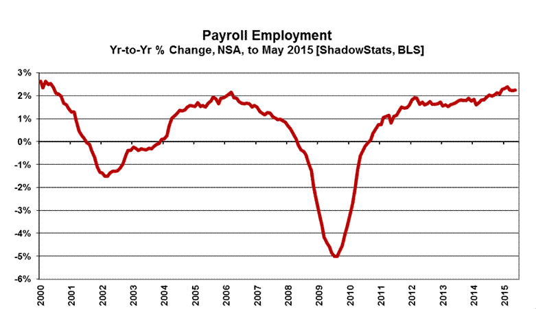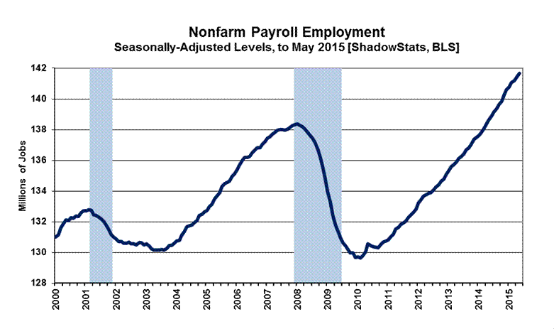 June 2015 Trend Estimate. Exclusive to ShadowStats subscribers, based on May 2015 reporting, the ExpliStats trend number calculations suggest a BLS-based headline gain of 236,000 for June 2015. That is the level around which the June consensus expectations should settle.