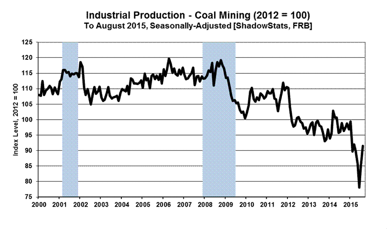 Drilling Down into August 2015 U.S. Industrial Production Detail. Graphs 7 to 10 show headline reporting of industrial production and some major components. The broad index (Graph 7) contracted in both first- and second-quarter 2015, a circumstance not seen outside of recessions. Such is detailed in the regular reporting on headline production earlier in this section and in the Opening Comments.