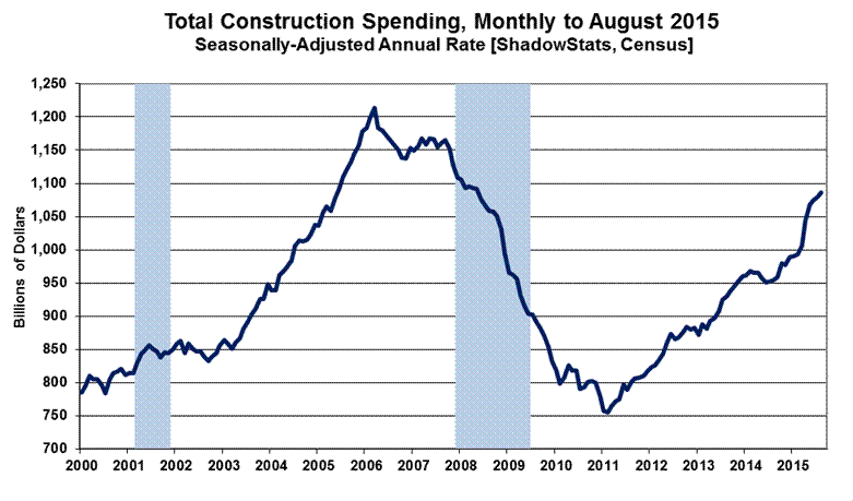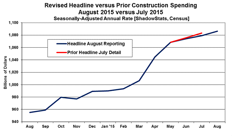 Today’s Commentary (October 2nd). The balance of these Opening Comments provides a summary of the reporting of September labor data and August construction spending, as well as an update to consumer conditions. The Hyperinflation Watch covers the headline annual growth in the ShadowStats-Ongoing M3 Money Supply Measure for September 2015. The Hyperinflation Outlook Summary has not been changed. The Week Ahead previews reporting for the August trade deficit.