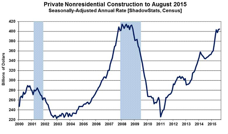 Separately, ShadowStats estimates that annual growth in September 2015 broad money supply M3 slowed to 5.7%, from an unrevised 6.1% in August 2015. The previously surging annual growth rate in August 2015 had been the highest seen since June 2009—the end of the formal 2007 recession. On a month-to-month basis, September M3 declined for the first time since January 2011.