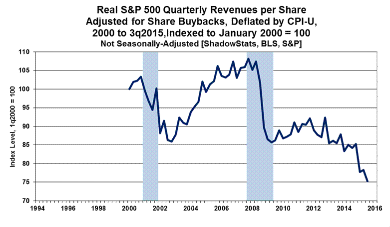 Graph 10: Real S&P 500 Sales Adjusted for Share Buybacks (2000 - 2015), Indexed to January 2000 = 100